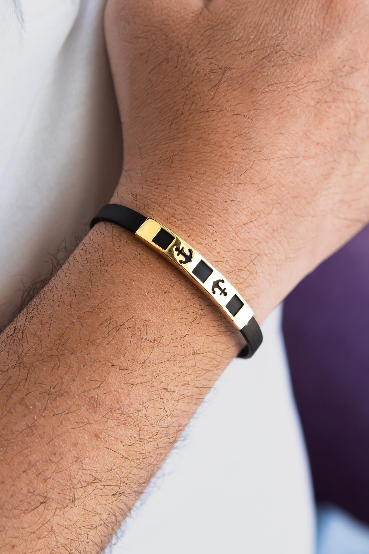 Semiz Kuyumculuk Pusula Figürlü Kauçuk Erkek Altın Bileklik