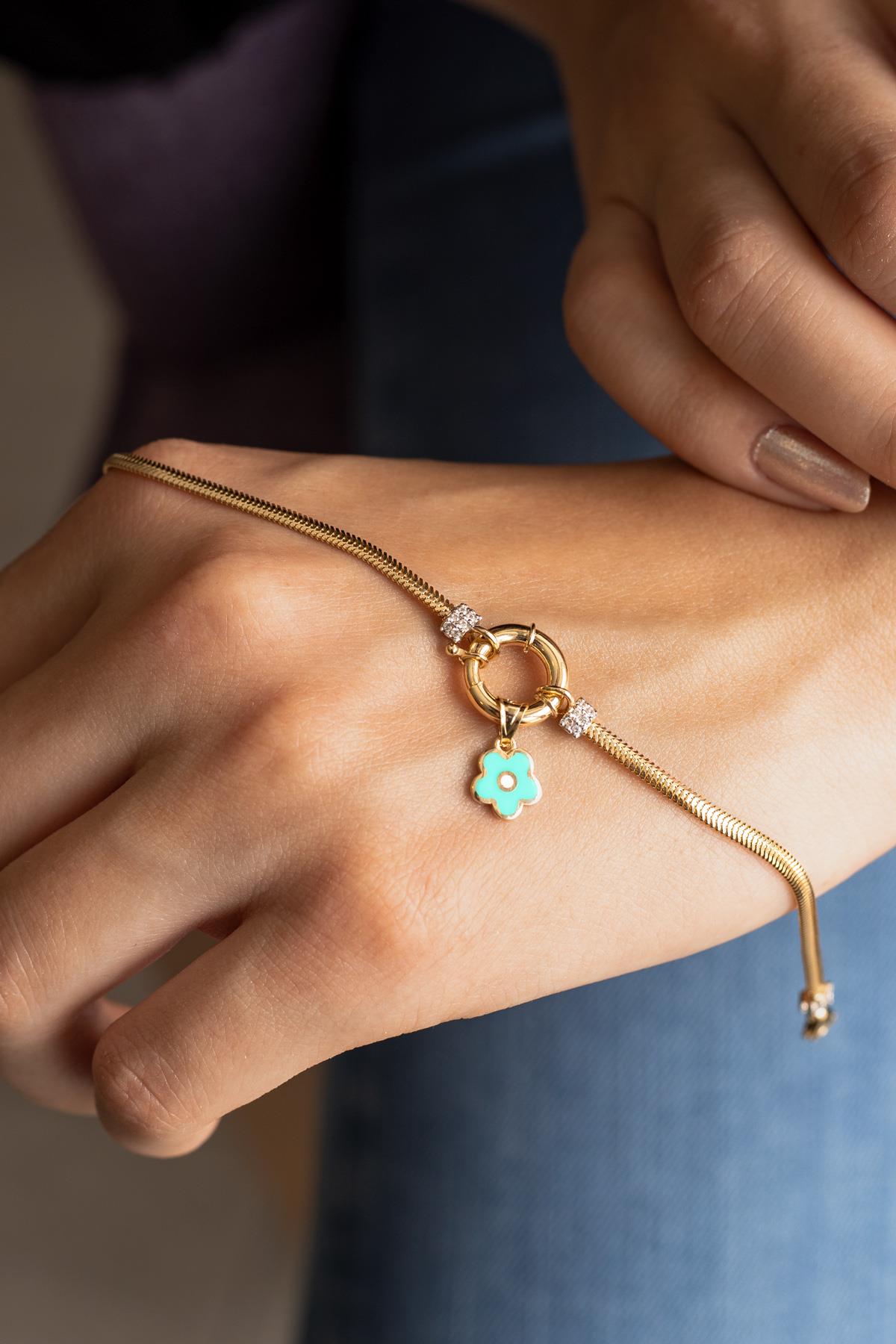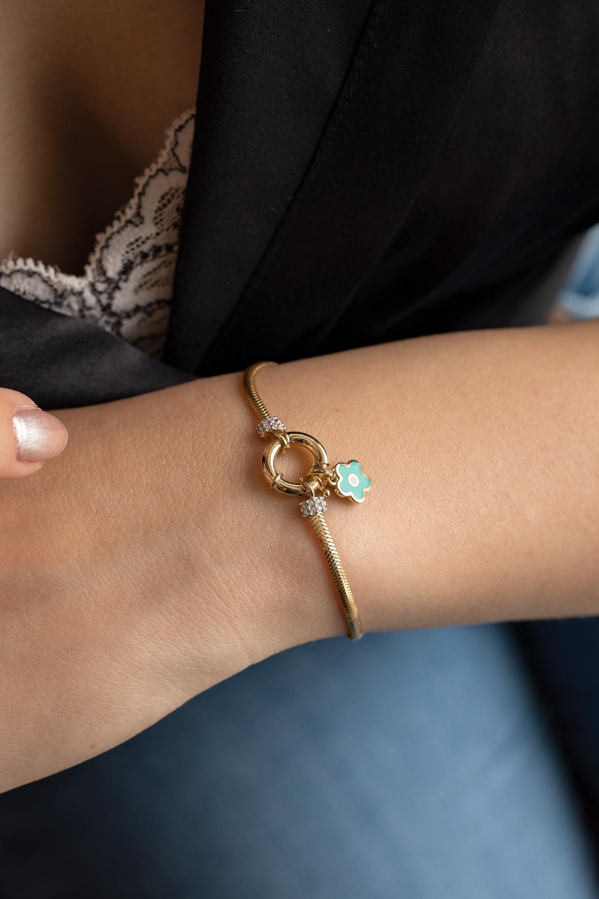 Semiz Kuyumculuk Çiçek Detaylı Yılan Altın Bileklik