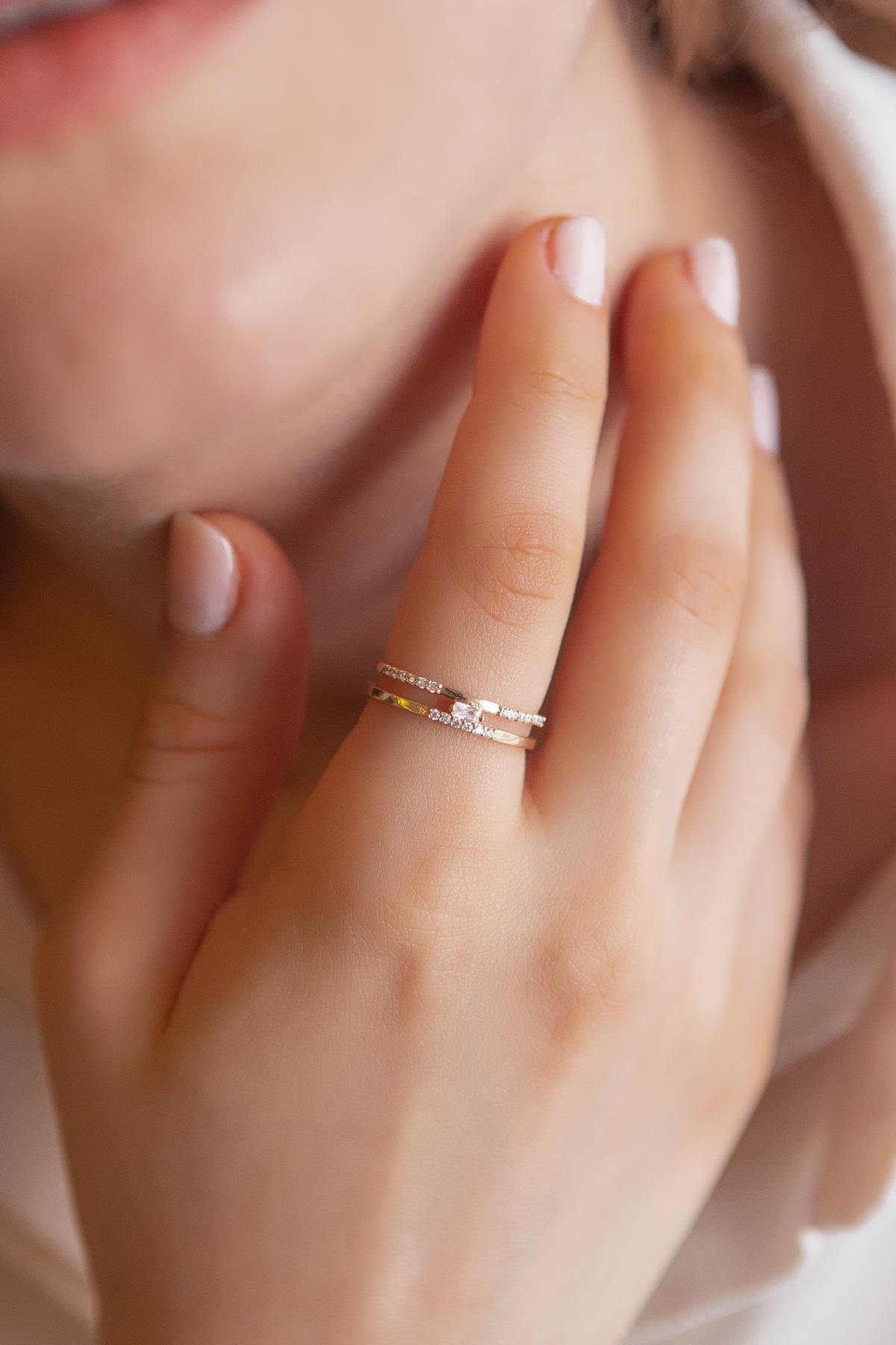 Semiz Kuyumculuk Çift Sıra Modern Tasarım Altın Yüzük