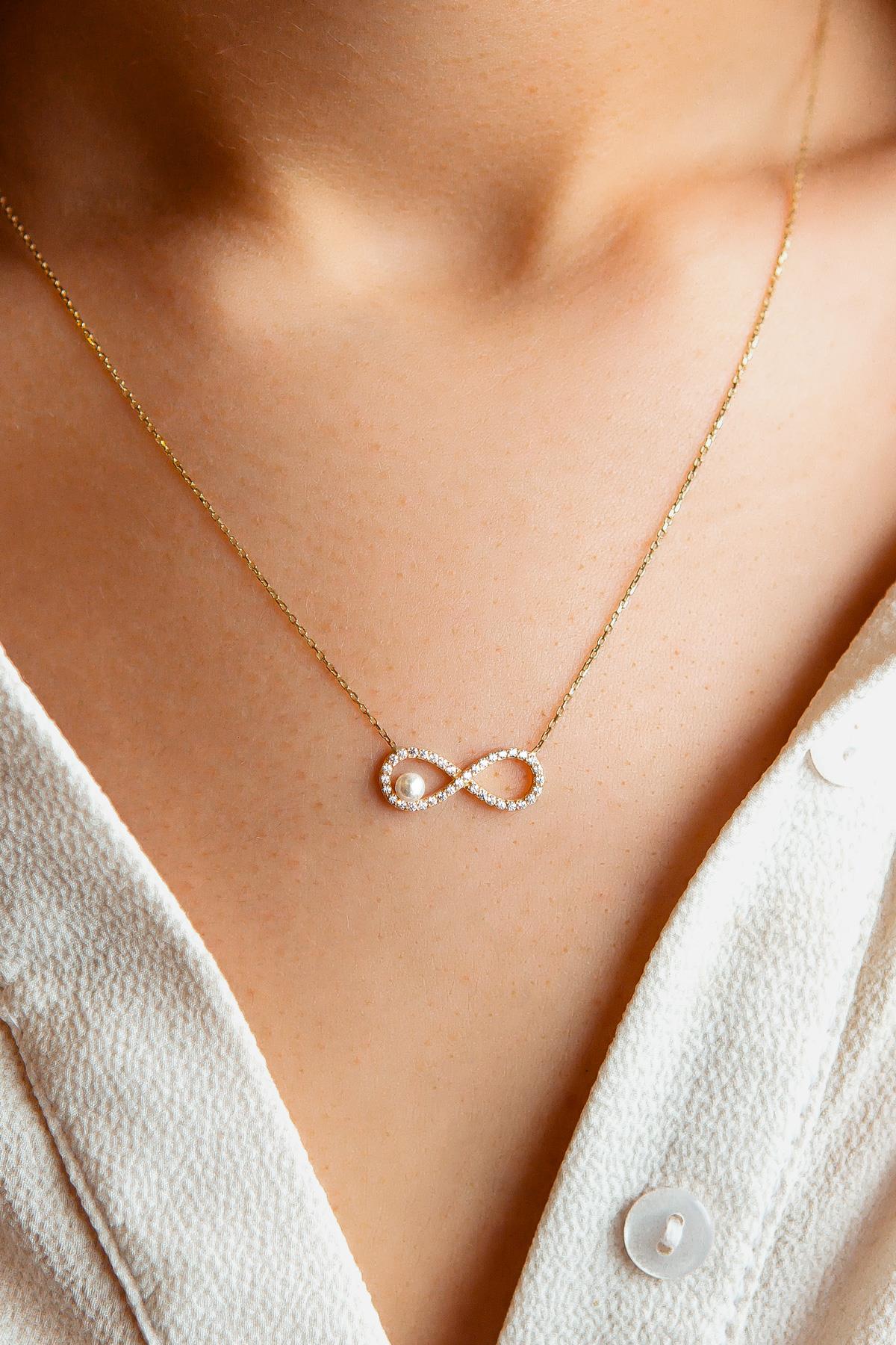Semiz Kuyumculuk İncili Sonsuzluk Altın Kolye