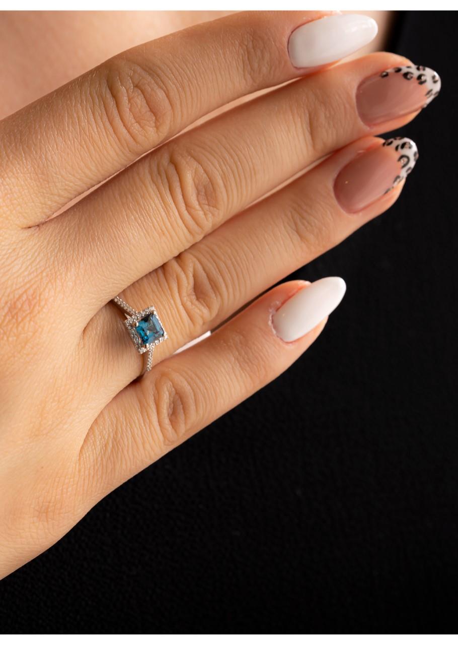 Semiz Kuyumculuk Kare London Blue Taşlı Pırlanta Yüzük