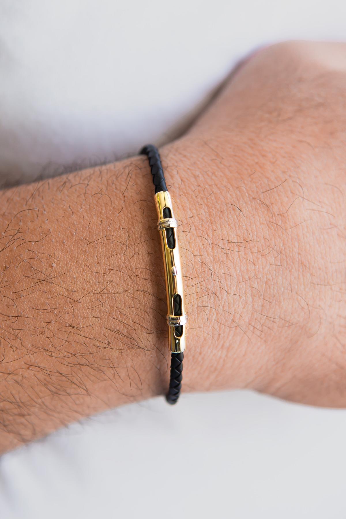 Semiz Kuyumculuk Kauçuk Modern Erkek Altın Bileklik