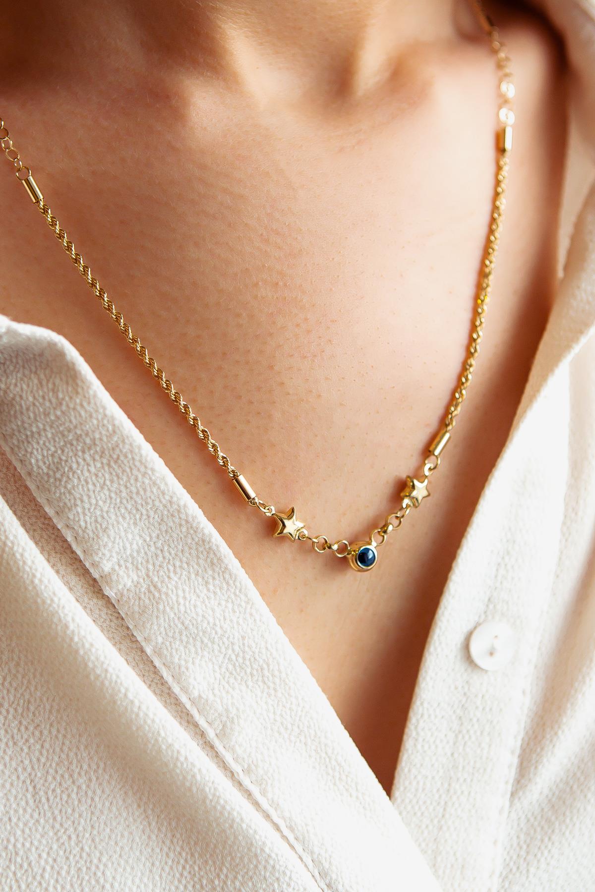 Semiz Kuyumculuk Nazar Boncuklu Yıldızlı Burgu Altın Zincir