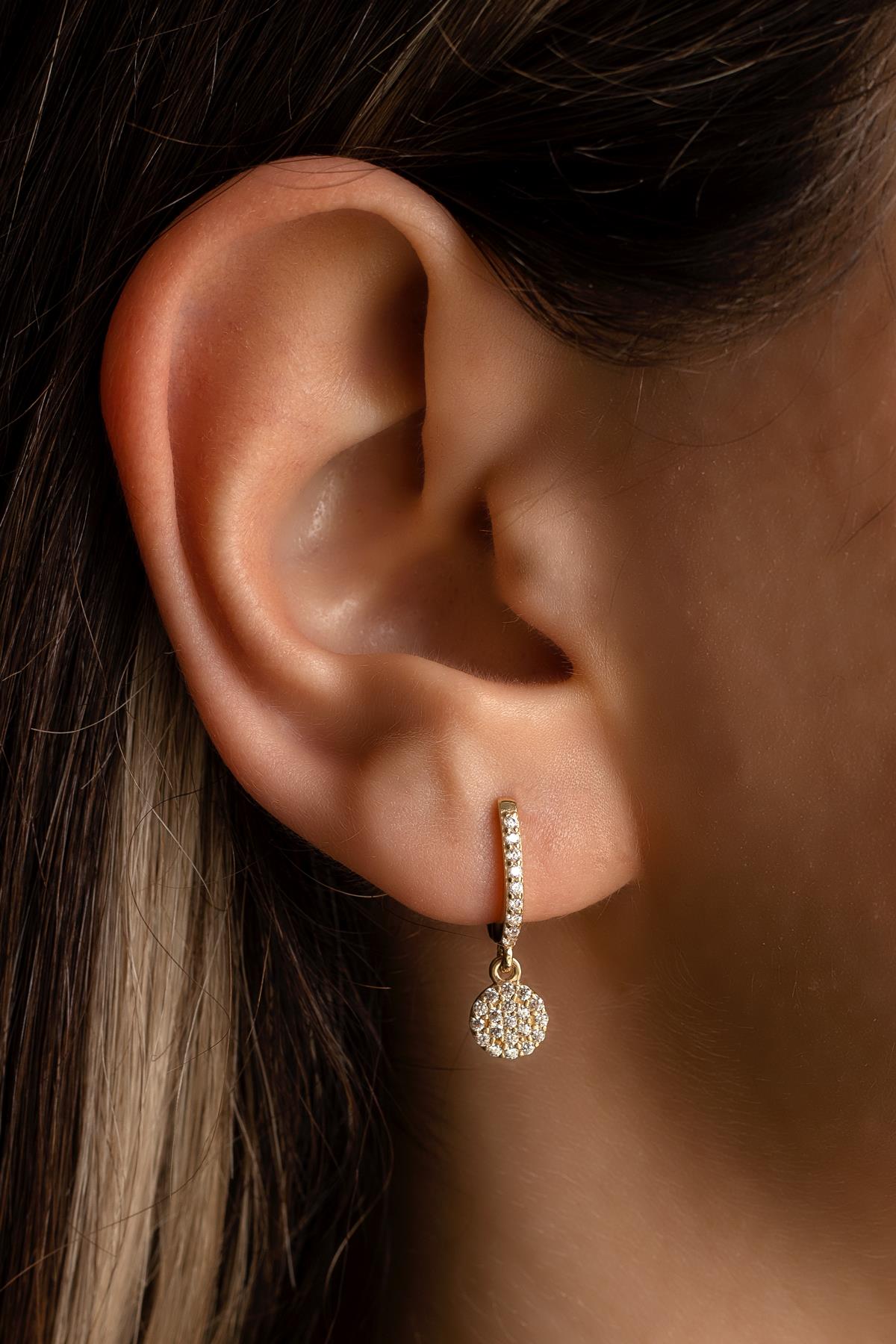 Semiz Kuyumculuk Sallantılı Yuvarlak Taşlı Altın Küpe
