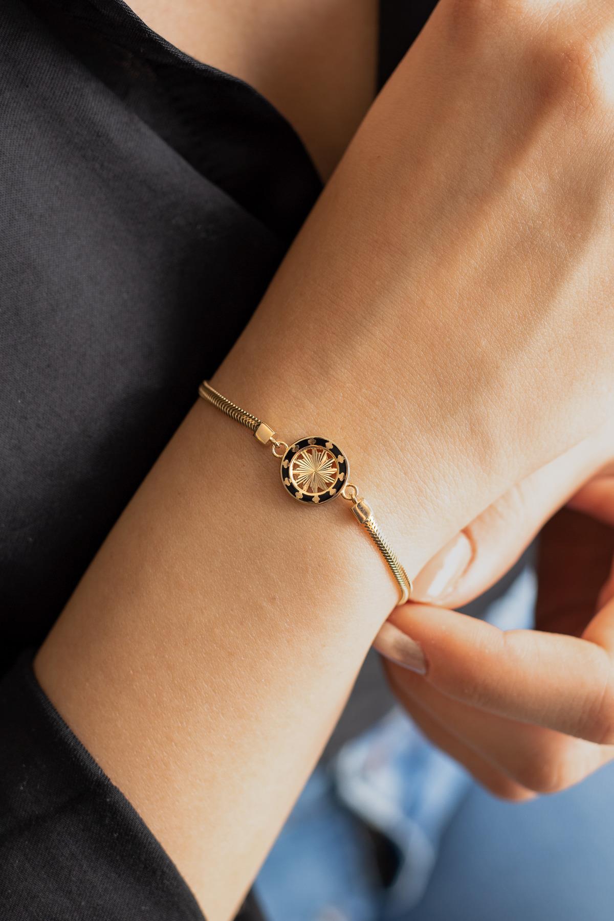 Semiz Kuyumculuk Siyah Mineli Güneş Altın Bileklik