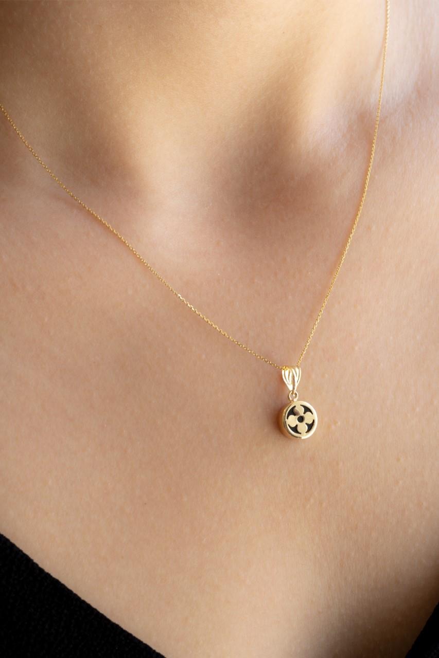 Semiz Kuyumculuk Siyah Sedefli Papatya Altın Kolye