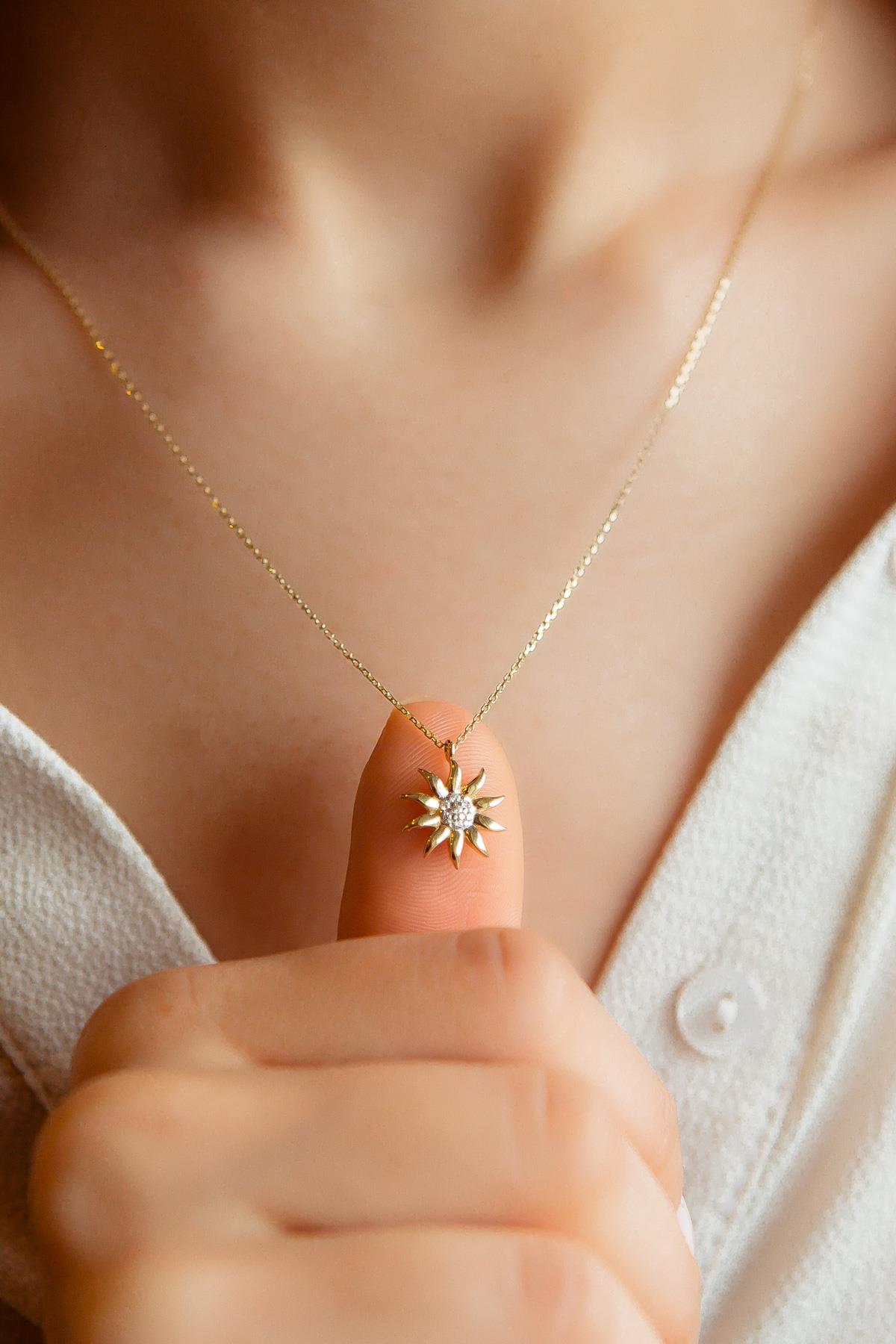 Semiz Kuyumculuk Taşlı Güneş Altın Kolye