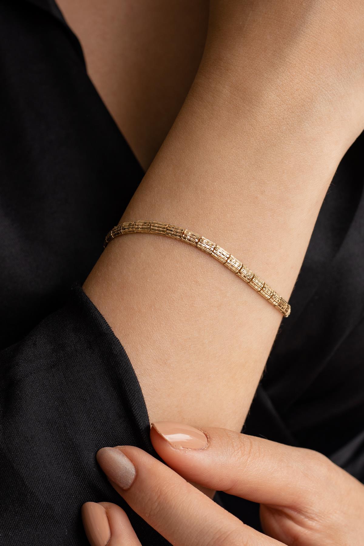 Semiz Kuyumculuk Taşsız İnce Sade Hasır Altın Bileklik