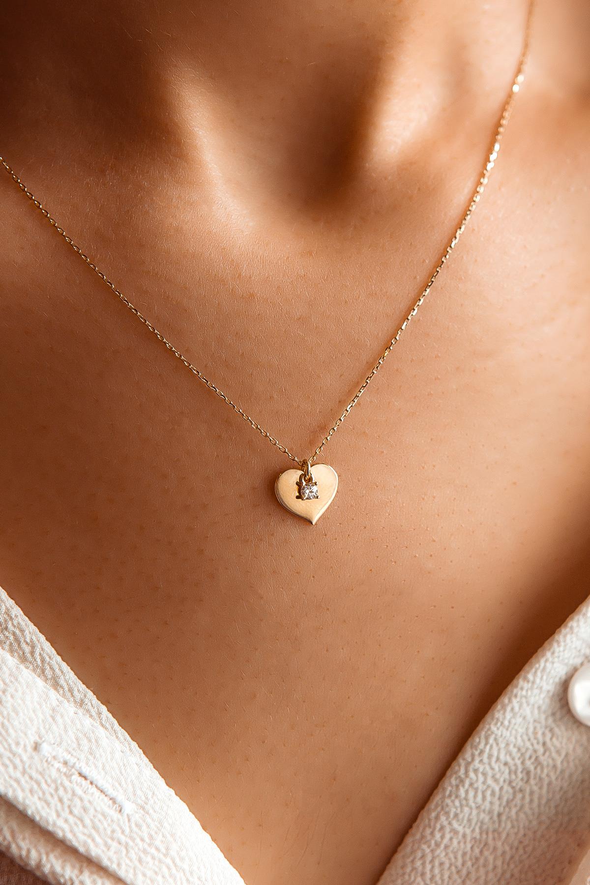 Semiz Kuyumculuk Tektaşlı Kalp Altın Kolye