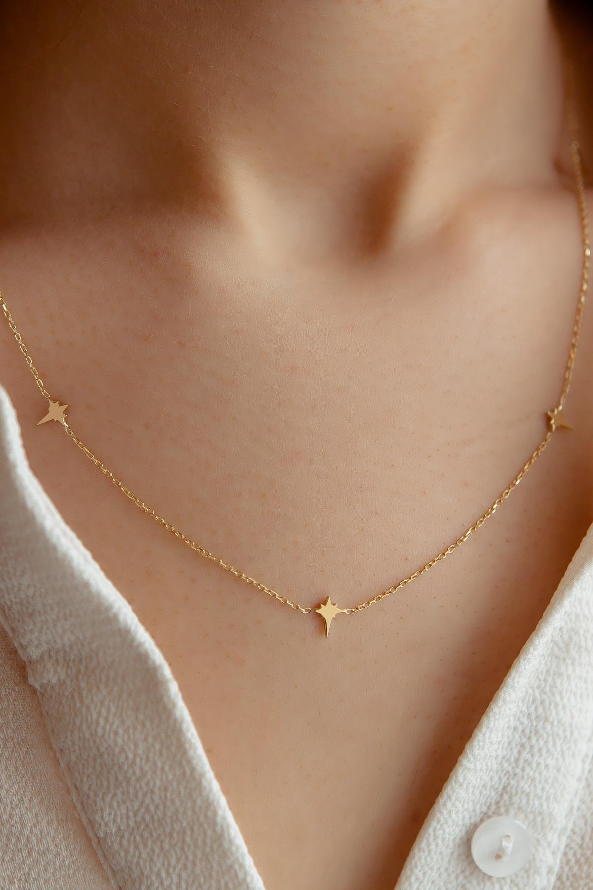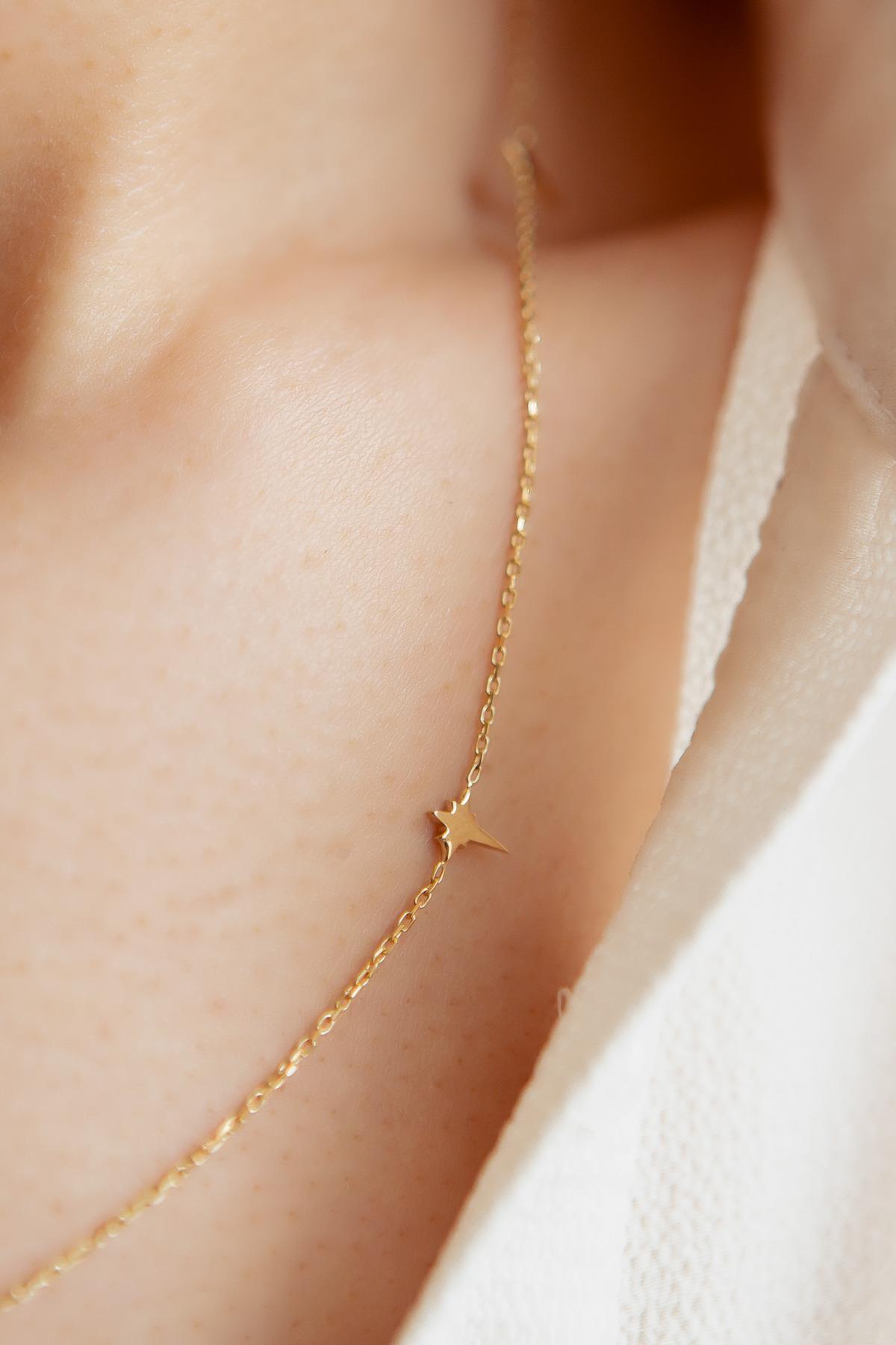 Semiz Kuyumculuk Uzun Taşsız Kuzey Yıldızı Altın Kolye