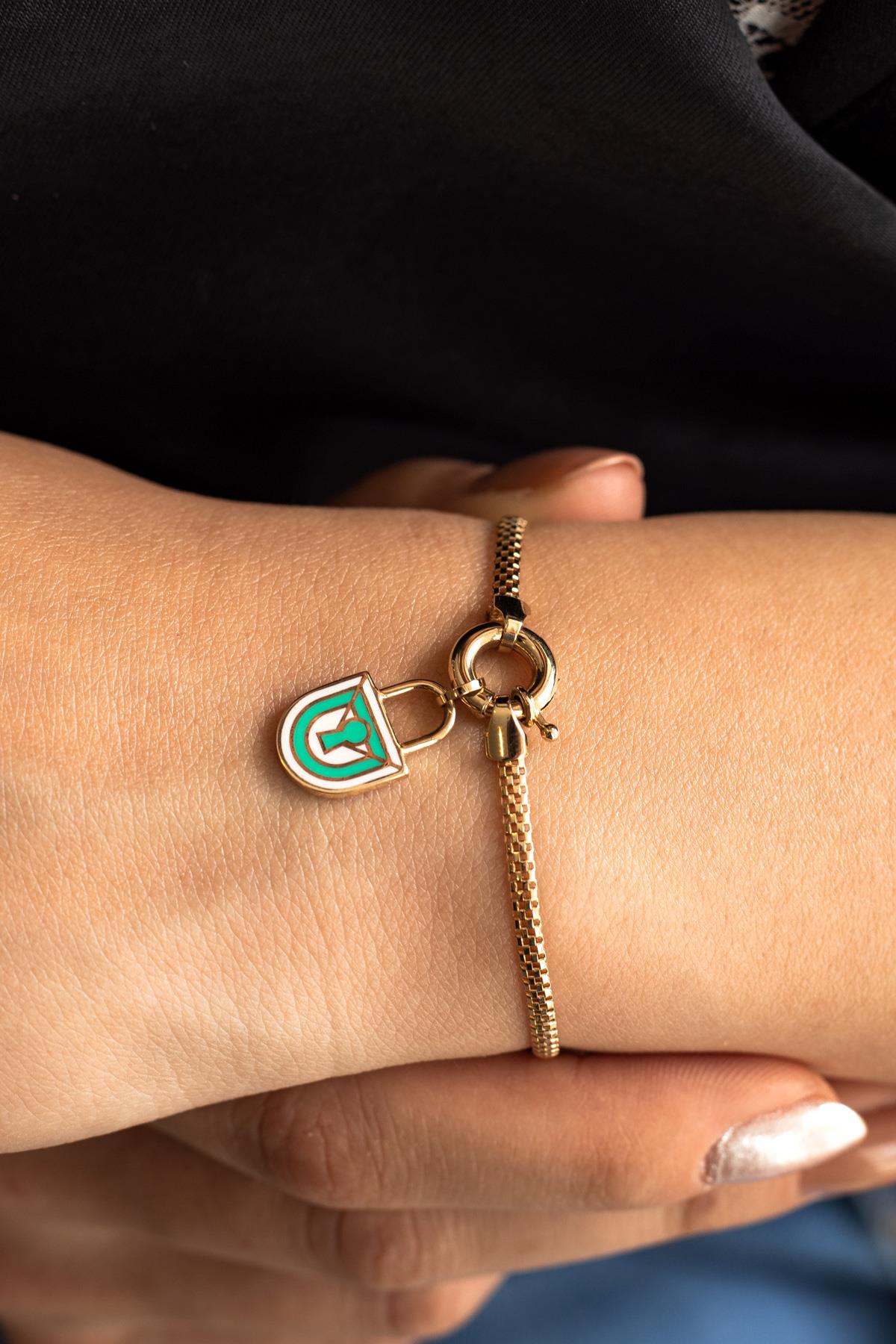 Semiz Kuyumculuk Yeşil Mineli Hasır Altın Bileklik